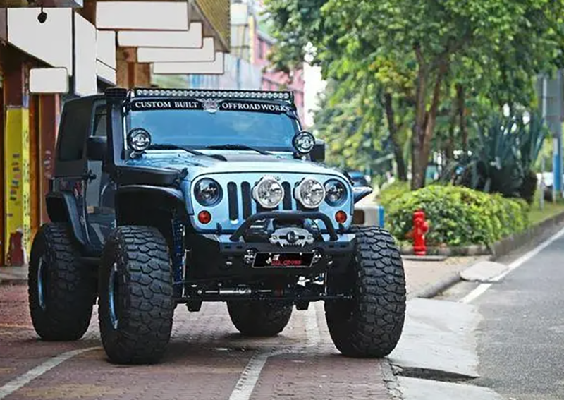 不论是金属材质的保险杠,还是保险杠上的射灯、绞盘,以及最为危险的、位于车头两侧树枝分离器,其都会在与非机动车和行人的交通事故中造成二次伤害!为什么家用汽车的保险杠会是工程塑料材质?用这种材质的出发点就是有效降低与人碰撞时造成的伤害。所以即便是量产越野车也会采用这种材料打造保险杠,并且引擎盖等位置的设计也会相对平滑,这都是出于相同出发点的设计。