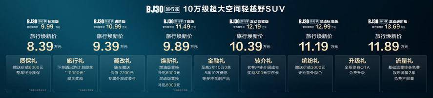 9月27日,“人人都是旅行家”北京越野BJ30旅行家上市发布会在北京雁栖湖举行。BJ30旅行家定位为10万级超大空间轻越野SUV,共有6款车型,官方指导价为9.99—13.69万元,旅行焕新价最低只需8.39万元起(叠加国补和厂端置换后)!