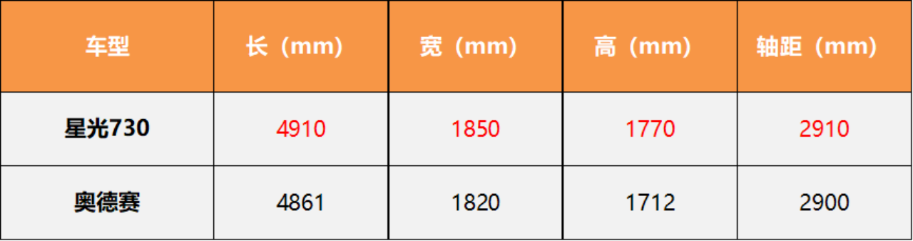 毕竟还没上市,应该很少有人看过实车,给大家列张和奥德赛的尺寸对比图,大概感受一下它的体型。星光730的长宽高分别为4910*1850*1770mm,轴距达到2910mm,这样的尺寸,能为车内空间打下不错的基础。