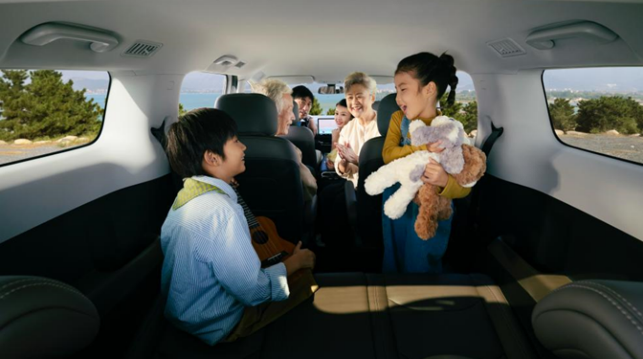 新车前脸设计很独特,有辨识度,侧面线条流畅,看起来时尚且和谐,没有传统MPV那种呆板厚重的感觉,十分大气,还有烟霞灰、银霜白、耀石黑、暮山紫四款车色。内饰的造型也迎合当下的趋势,简洁为主,全液晶仪表盘+大尺寸悬浮式中控屏的组合,符合行业的设计潮流。动力部分提供燃油、插混、纯电三种选择,满足不同的消费需求。作为MPV,最重要的自然是空间,和大家分享下它在这方面的表现。