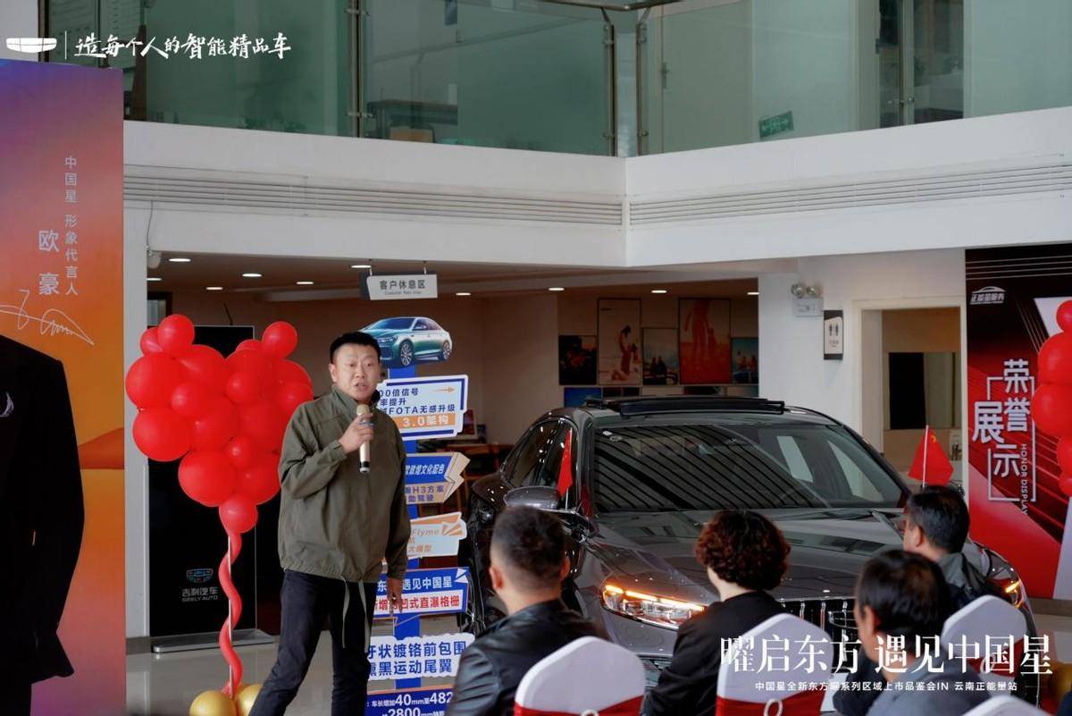 活动伊始,云南正能量吉利汽车4S店销售总监崔波在致辞中表示:“星瑞自上市以来,始终是云南地区消费者青睐的‘国民高性能家轿’。今天,我们迎来中国星星瑞全新东方曜的升级上市,它不仅继承了星瑞家族的优秀基因,更将东方美学设计哲学与前沿智能科技深度融合,旨在为云南地区的用户带来更具品位、更富驾控乐趣的出行选择。