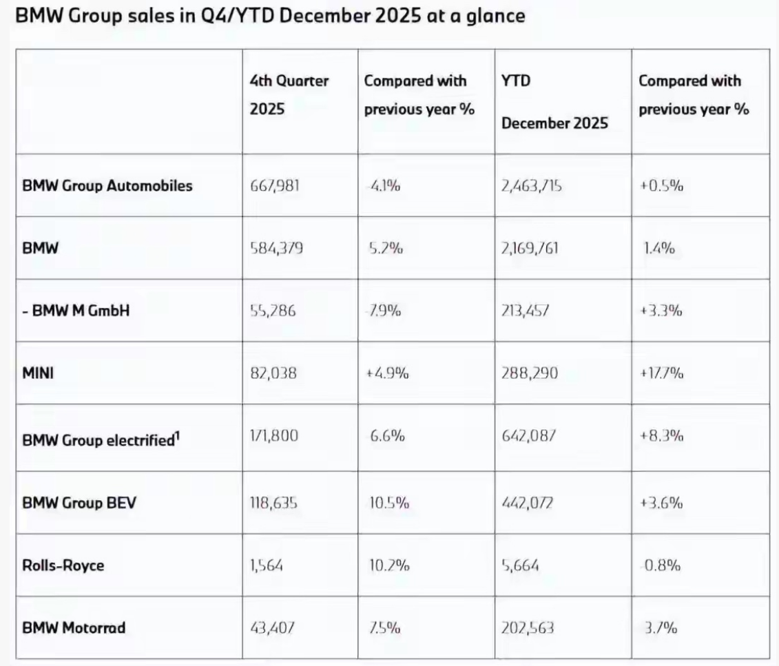 宝马2025年全球销量增0.5%,中国市场却下滑12.5%